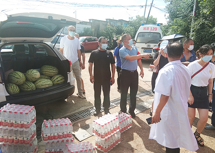 当天,湖南巨发颜料有限公司工作人员向防疫一线的工作人员送来了矿泉水、西瓜,给防疫一线工作者送去关怀和温暖,用实际行动表达对疫情防控工作的支持,展现企业社会责任,传递爱心,感谢他们为疫情防控工作作出无私奉献。