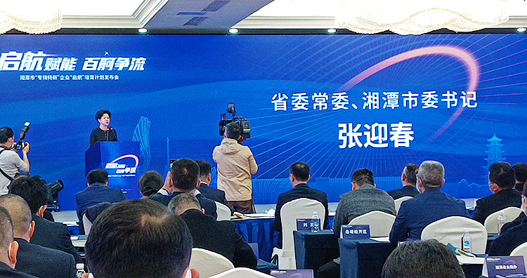 图:湘潭市委常委、市人民政府副市长周晖介绍湘潭市“专精特新”企业“启航”培育计划