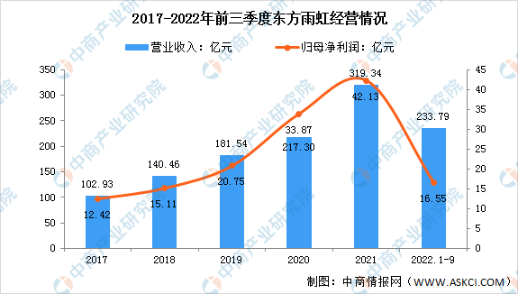 2022年前三季度,东方雨虹实现营业收入233.79亿元,同比增长3.07%;归股净利润营收16.55亿元,同比下降38.20%