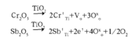 在高温条件下,Cr3-和Sb5+ 产生热振动,开始进入TiO2晶格中,取代处于中心的Ti4+,发生如下反应: