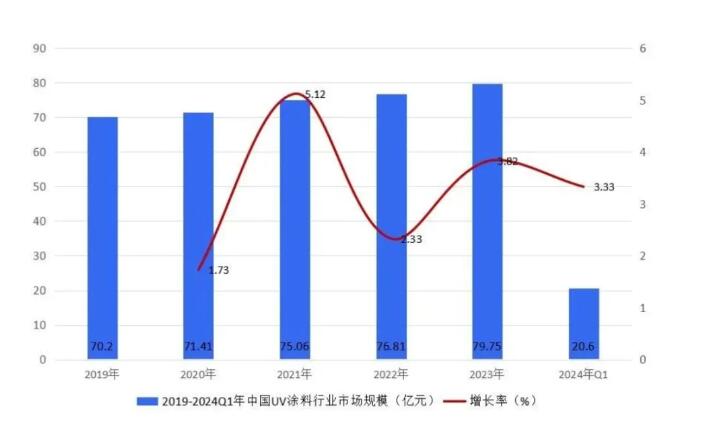2022年中国UV涂料行业的市场规模已接近77亿元
